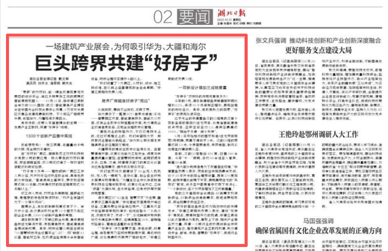 湖北日報:一場建筑產(chǎn)業(yè)展會,為何吸引華為、大疆和海爾巨頭跨界共建“好房子”